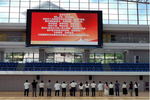 最后,学院党委书记李燕教授带领全体师生庄严举行医学生誓言宣誓仪式。铿锵有力的誓言在体育馆内久久回荡,传递出坚定的从医信念与时代担当。此次活动以“立医者誓言,担时代使命”为精神内核,不仅为师生搭建了深度交流的平台,更有力增强了彼此间的情感连接与信任基础,见证了英国威廉希尔公司官网育人共同体的凝聚与启航。