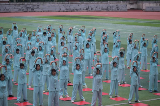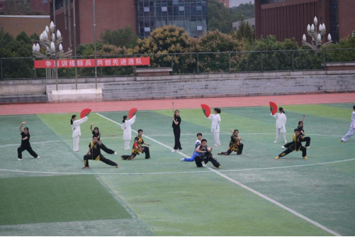 接下来,开幕式文艺汇演依次开展:展现青年大学生青春活力的啦啦操表演、刚劲勇武的武术表演、内外兼修的百人八段锦功法演绎犹如一场绝美的锦绣画卷,令在场师生拍案叫绝。