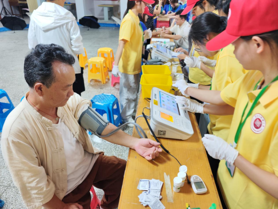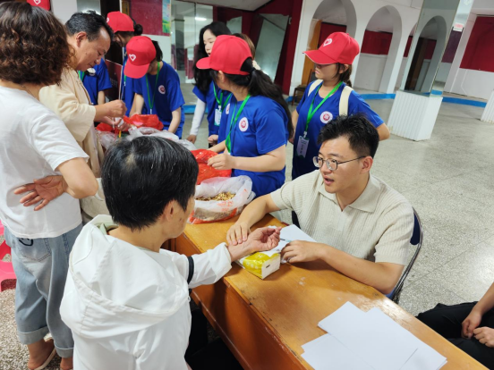 在为期两天的活动中,学院师生们为马场镇社区居民进行了医疗体检和义诊服务,帮助居民了解自身的健康状况,并提供专业的医疗建议。此外,学生代表还教授居民如何制作养生香包和养生锤,这些传统中医养生工具不仅具有实用价值,还富含中医文化意义。中医药茶品鉴区同样受到居民的热烈欢迎。师生代表们精心准备了多种中医药茶饮,让居民在品尝的同时,了解中医药茶饮的保健功效和制作方法。